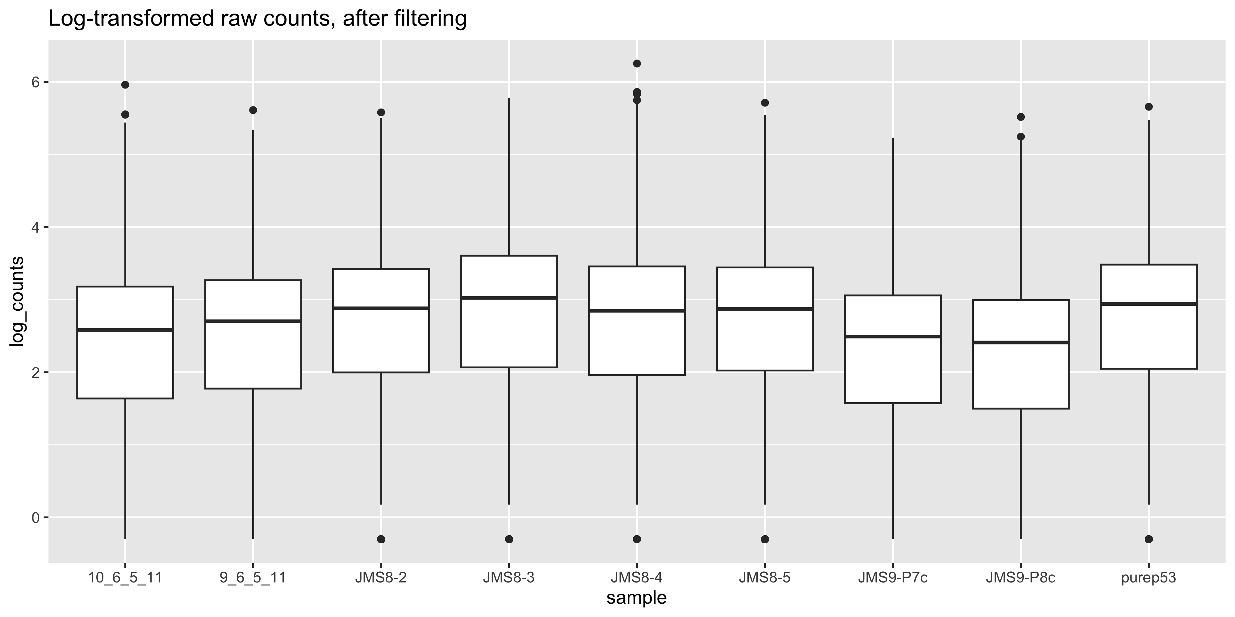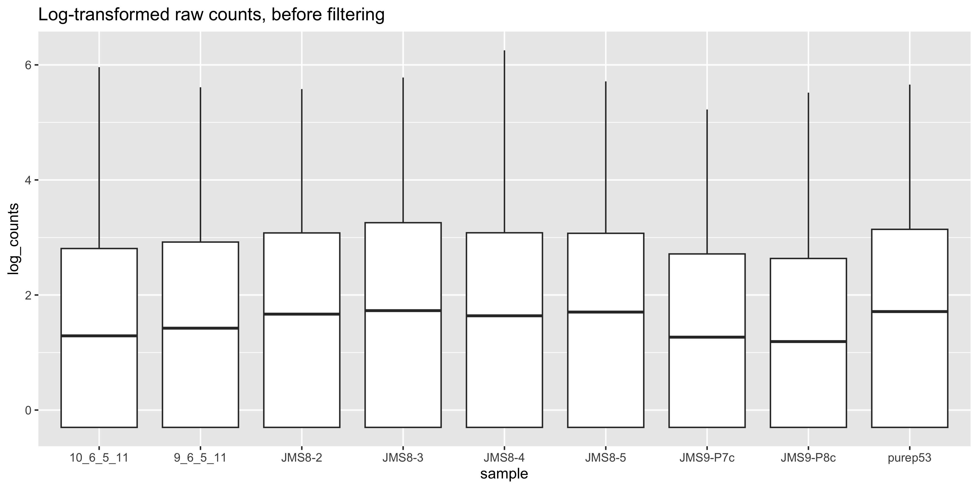 head(dge$counts) 10_6_5_11 9_6_5_11 purep53 JMS8-2 JMS8-3 JMS8-4 JMS8-5 JMS9-P7c